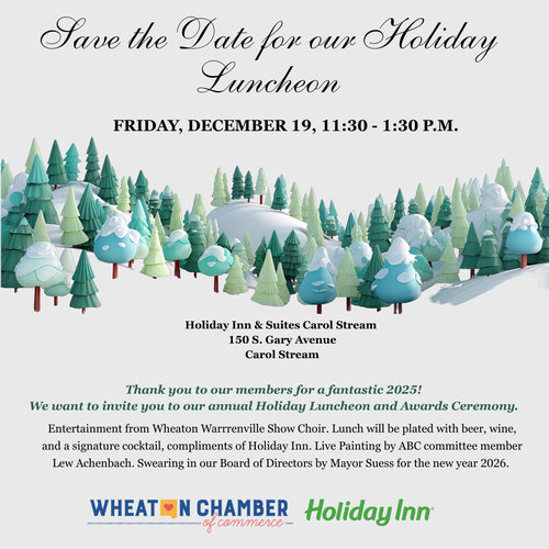 Please join us and Wheaton Bank & Trust for our annual holiday luncheon! This is a celebration for the year 2025, thanking and recognizing our amazing members and Volunteers who make it happen!